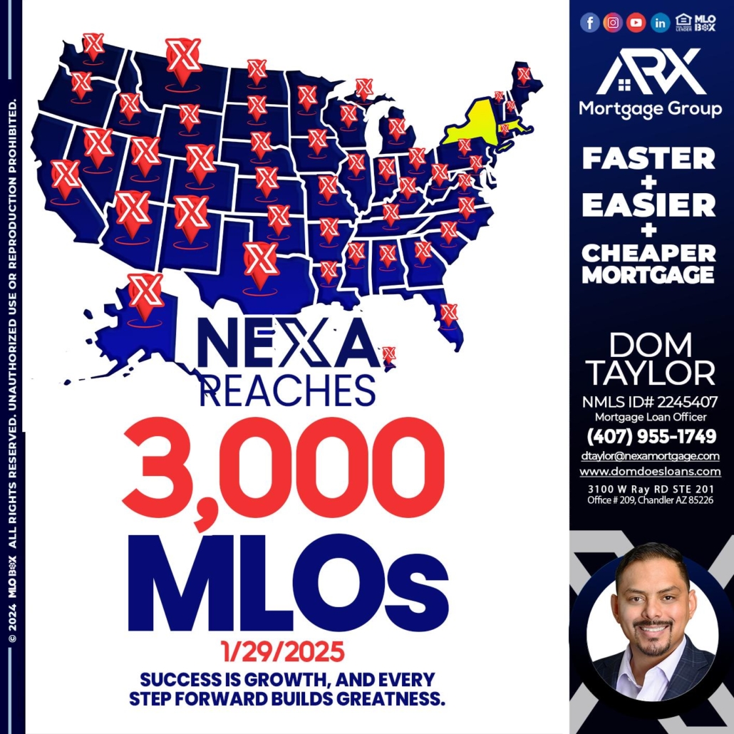 Hi, my name is Dom Taylor. I’m a Loan Officer with NEXA Mortgage LLC., offering personalized mortgage solutions, fast customized quotes, great rates and service with integrity.