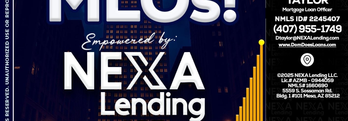 Hi, my name is Dom Taylor. I’m a Loan Officer with NEXA Mortgage LLC., offering personalized mortgage solutions, fast customized quotes, great rates and service with integrity.
