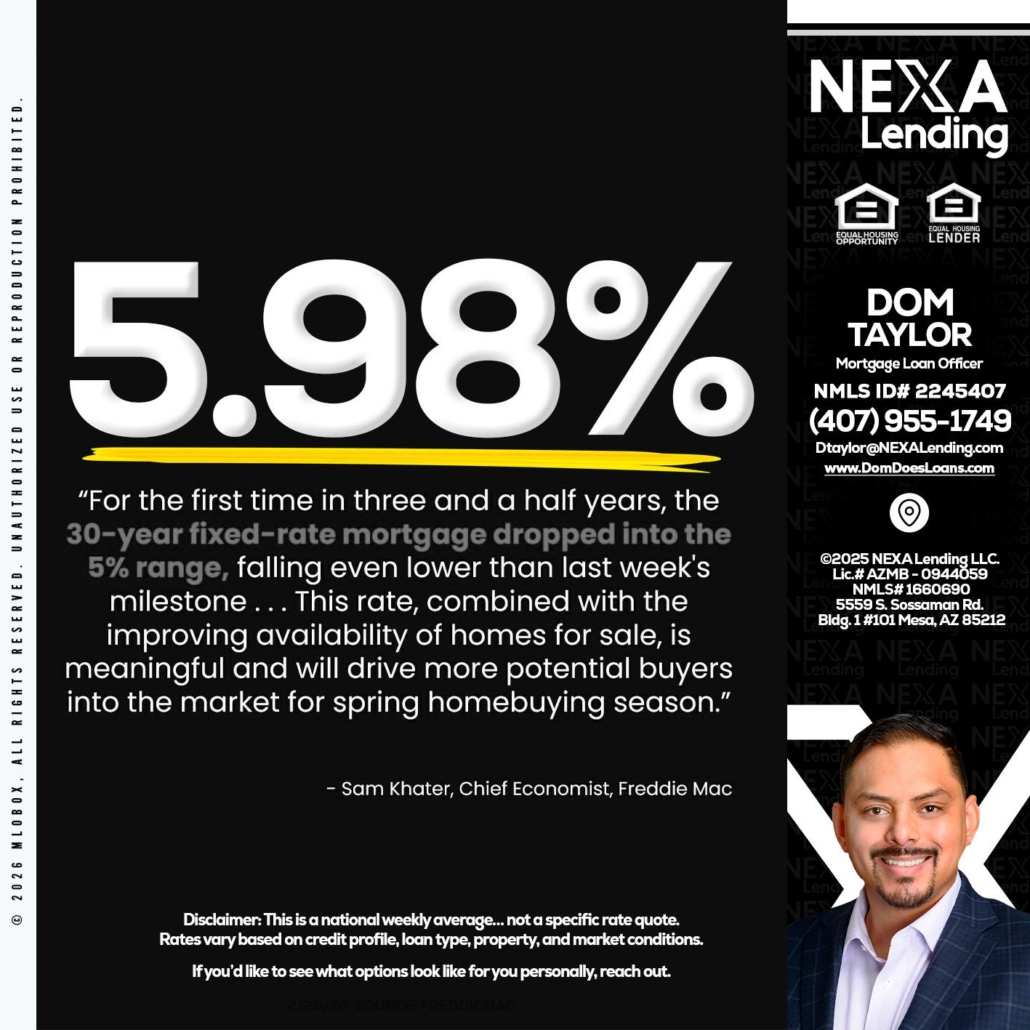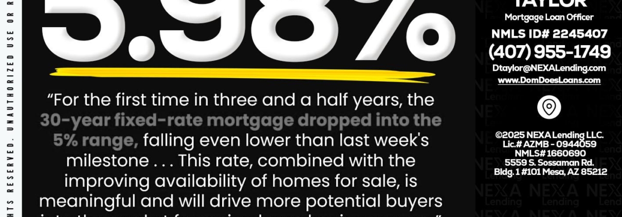 Hi, my name is Dom Taylor. I’m a Loan Officer with NEXA Lending LLC., offering personalized mortgage solutions, fast customized quotes, great rates and service with integrity.