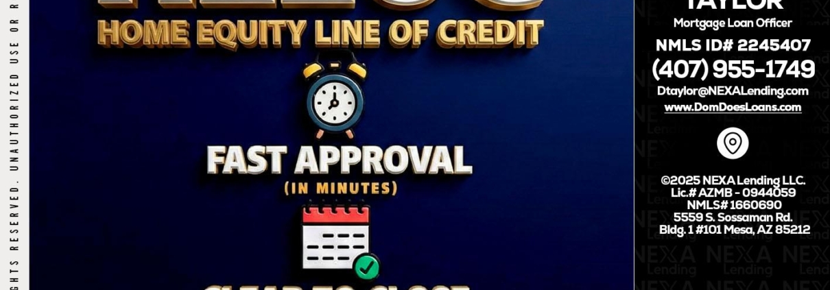 Hi, my name is Dom Taylor. I’m a Loan Officer with NEXA Lending LLC., offering personalized mortgage solutions, fast customized quotes, great rates and service with integrity.