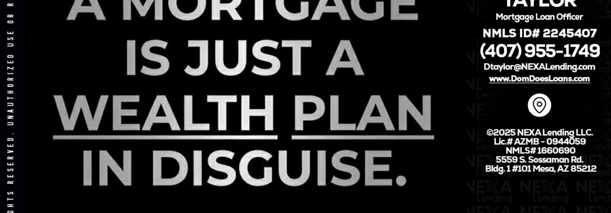 Hi, my name is Dom Taylor. I’m a Loan Officer with NEXA Lending LLC., offering personalized mortgage solutions, fast customized quotes, great rates and service with integrity.
