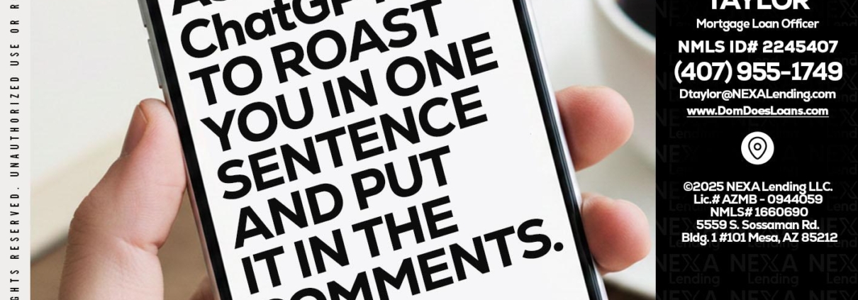Hi, my name is Dom Taylor. I’m a Loan Officer with NEXA Lending LLC., offering personalized mortgage solutions, fast customized quotes, great rates and service with integrity.