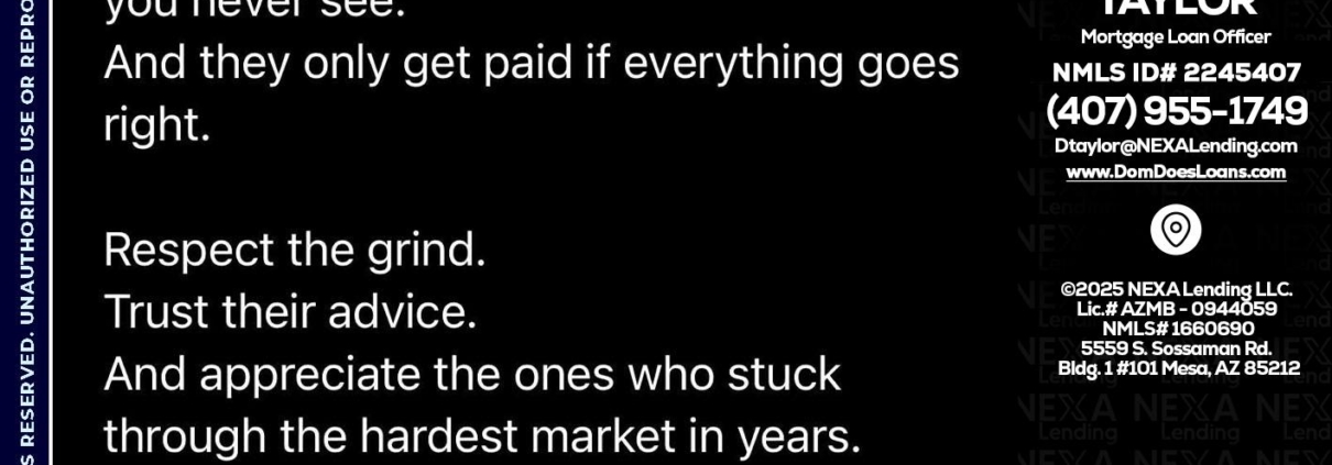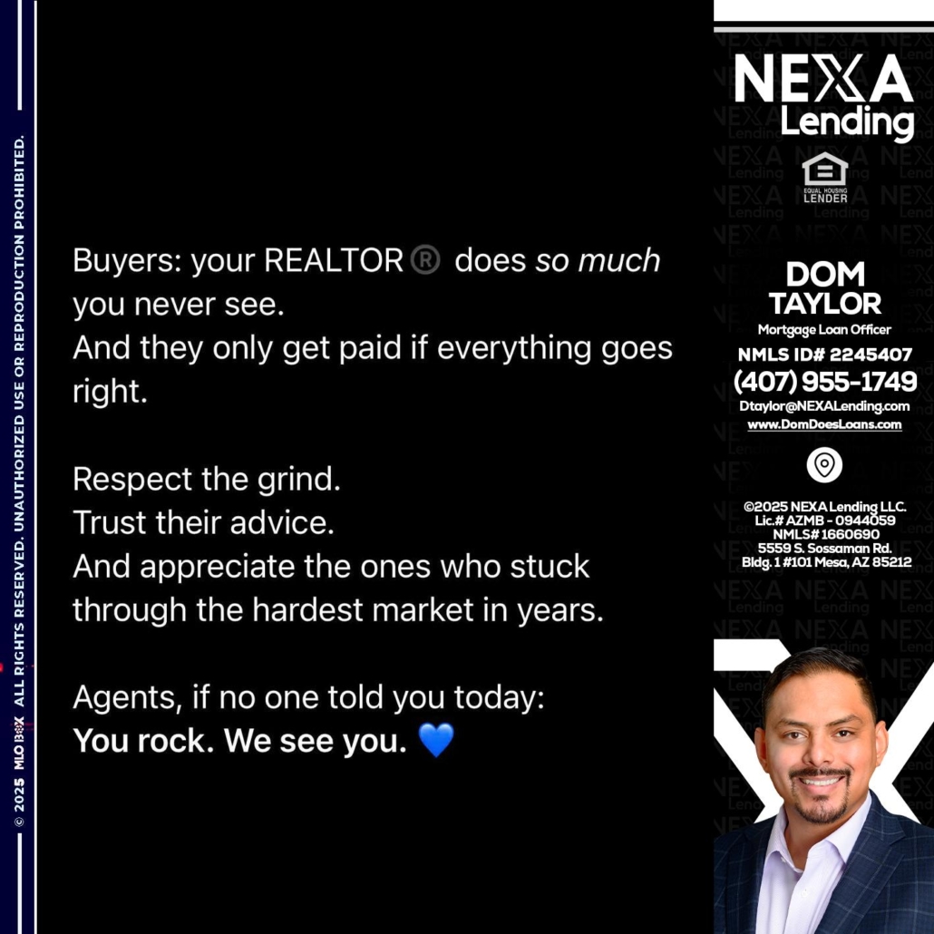 BUYERS - Dom Taylor -Mortgage Loan OfficerHi, my name is Dom Taylor. I’m a Loan Officer with NEXA Mortgage LLC., offering personalized mortgage solutions, fast customized quotes, great rates and service with integrity.