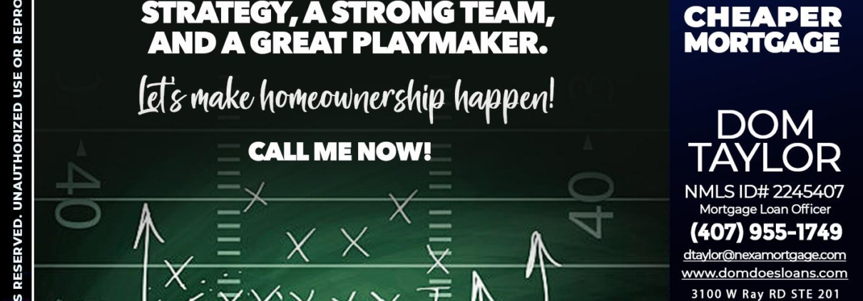 Hi, my name is Dom Taylor. I’m a Loan Officer with NEXA Mortgage LLC., offering personalized mortgage solutions, fast customized quotes, great rates and service with integrity.