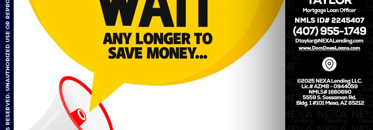 Hi, my name is Dom Taylor. I’m a Loan Officer with NEXA Mortgage LLC., offering personalized mortgage solutions, fast customized quotes, great rates and service with integrity.