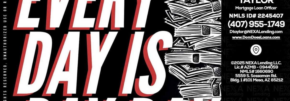 EVERY DAY IS PAY DAY - Dom Taylor -Mortgage Loan OfficerHi, my name is Dom Taylor. I’m a Loan Officer with NEXA Lending LLC., offering personalized mortgage solutions, fast customized quotes, great rates and service with integrity.