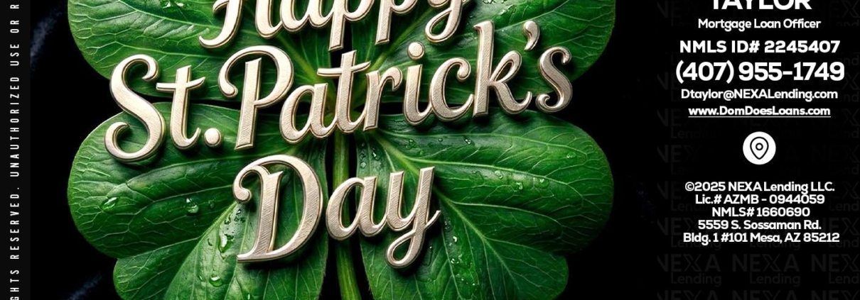 happy st. Patricks day - Dom Taylor -Mortgage Loan OfficerHi, my name is Dom Taylor. I’m a Loan Officer with NEXA Lending LLC., offering personalized mortgage solutions, fast customized quotes, great rates and service with integrity.