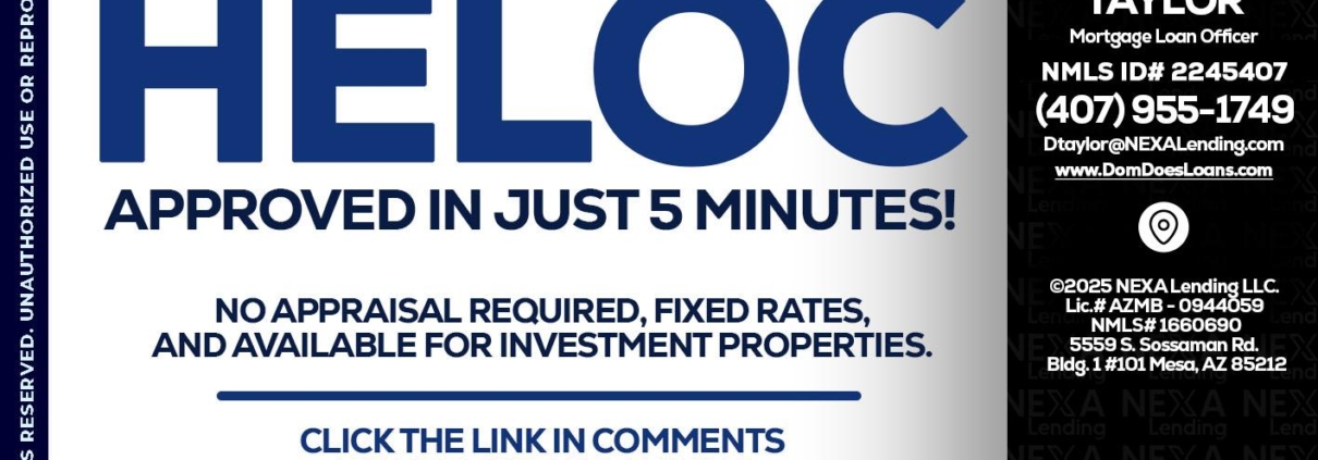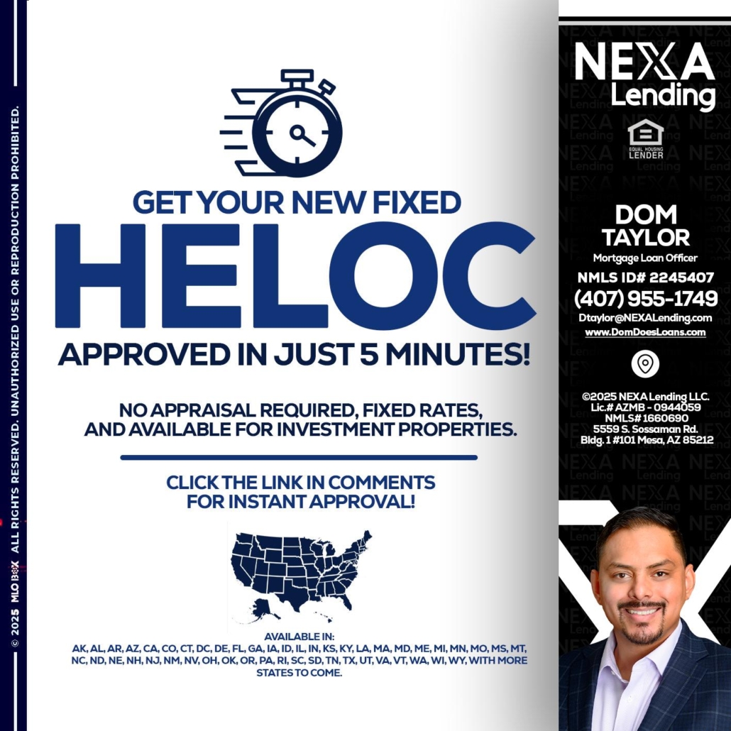 Hi, my name is Dom Taylor. I’m a Loan Officer with NEXA Mortgage LLC., offering personalized mortgage solutions, fast customized quotes, great rates and service with integrity.