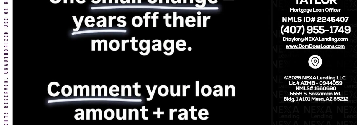 Hi, my name is Dom Taylor. I’m a Loan Officer with NEXA Lending LLC., offering personalized mortgage solutions, fast customized quotes, great rates and service with integrity.