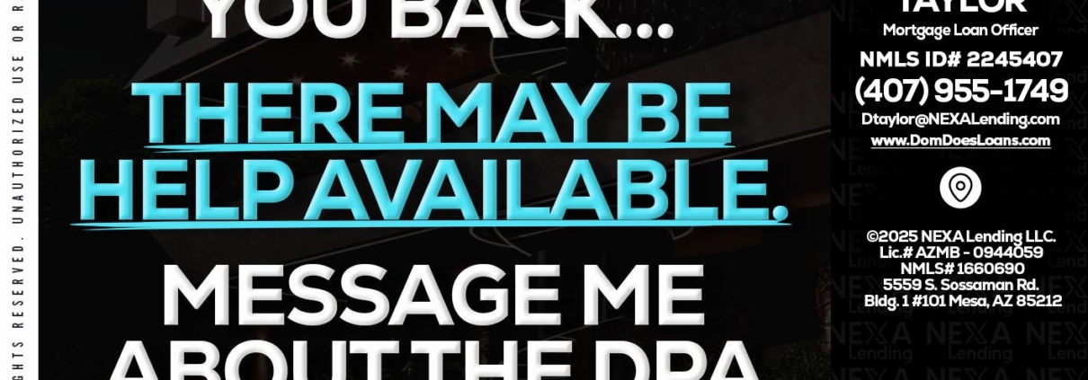 Hi, my name is Dom Taylor. I’m a Loan Officer with NEXA Lending LLC., offering personalized mortgage solutions, fast customized quotes, great rates and service with integrity.