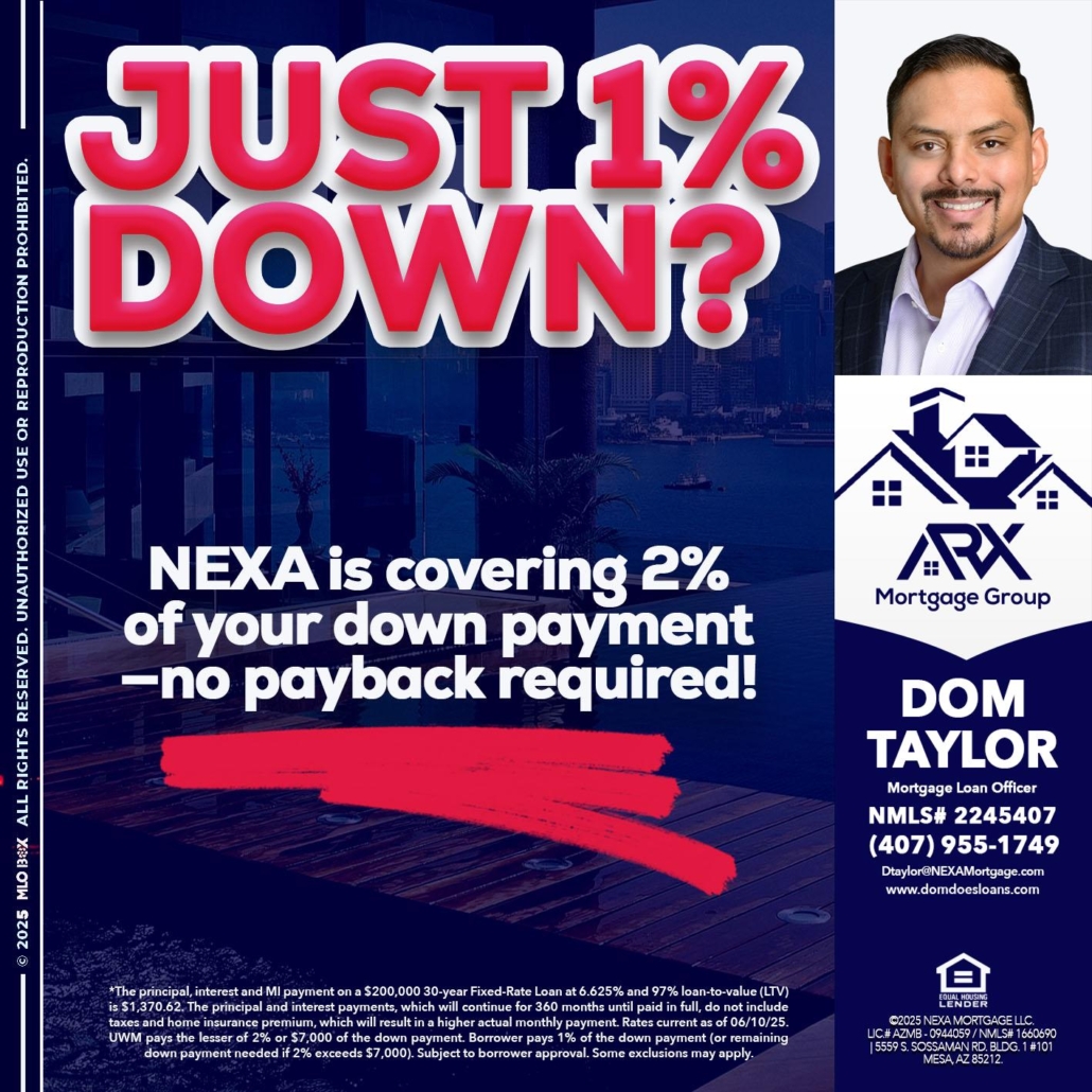 Hi, my name is Dom Taylor. I’m a Loan Officer with NEXA Mortgage LLC., offering personalized mortgage solutions, fast customized quotes, great rates and service with integrity.