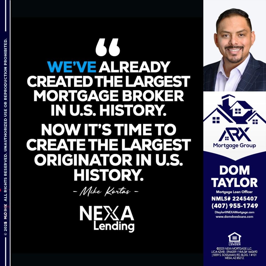 MIKE KORTAS - Dom Taylor -Mortgage Loan OfficerHi, my name is Dom Taylor. I’m a Loan Officer with NEXA Mortgage LLC., offering personalized mortgage solutions, fast customized quotes, great rates and service with integrity.