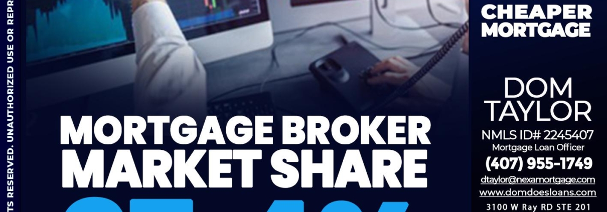 MORTGAGE BROKER MARKET SHARE - Dom Taylor -Mortgage Loan OfficerHi, my name is Dom Taylor. I’m a Loan Officer with NEXA Mortgage LLC., offering personalized mortgage solutions, fast customized quotes, great rates and service with integrity.