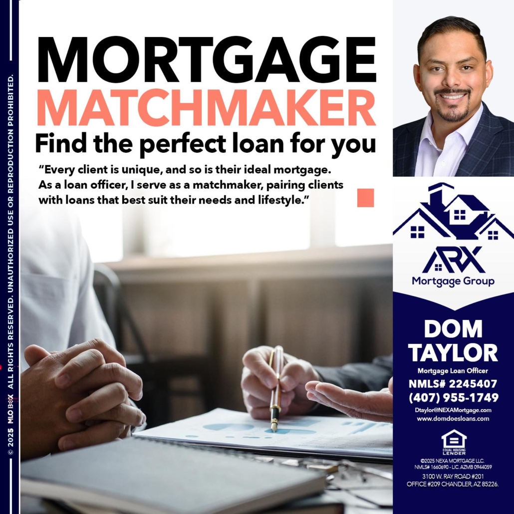Hi, my name is Dom Taylor. I’m a Loan Officer with NEXA Mortgage LLC., offering personalized mortgage solutions, fast customized quotes, great rates and service with integrity.