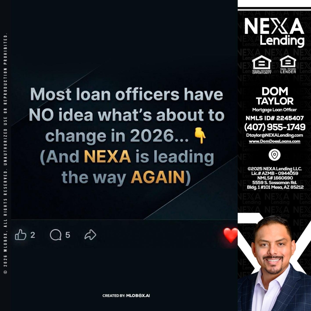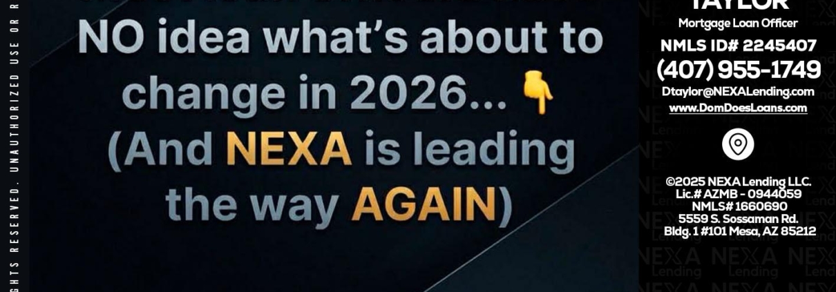 Hi, my name is Dom Taylor. I’m a Loan Officer with NEXA Lending LLC., offering personalized mortgage solutions, fast customized quotes, great rates and service with integrity.