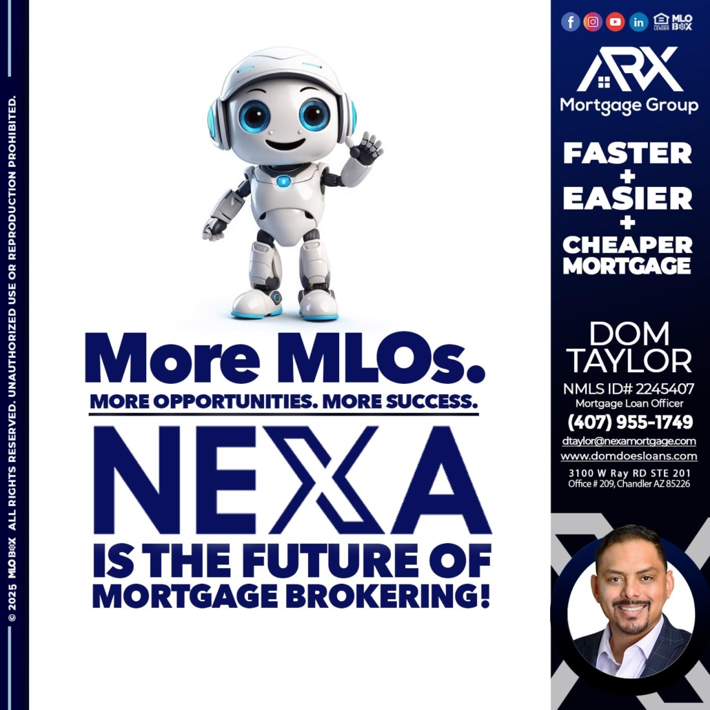 Hi, my name is Dom Taylor. I’m a Loan Officer with NEXA Mortgage LLC., offering personalized mortgage solutions, fast customized quotes, great rates and service with integrity.