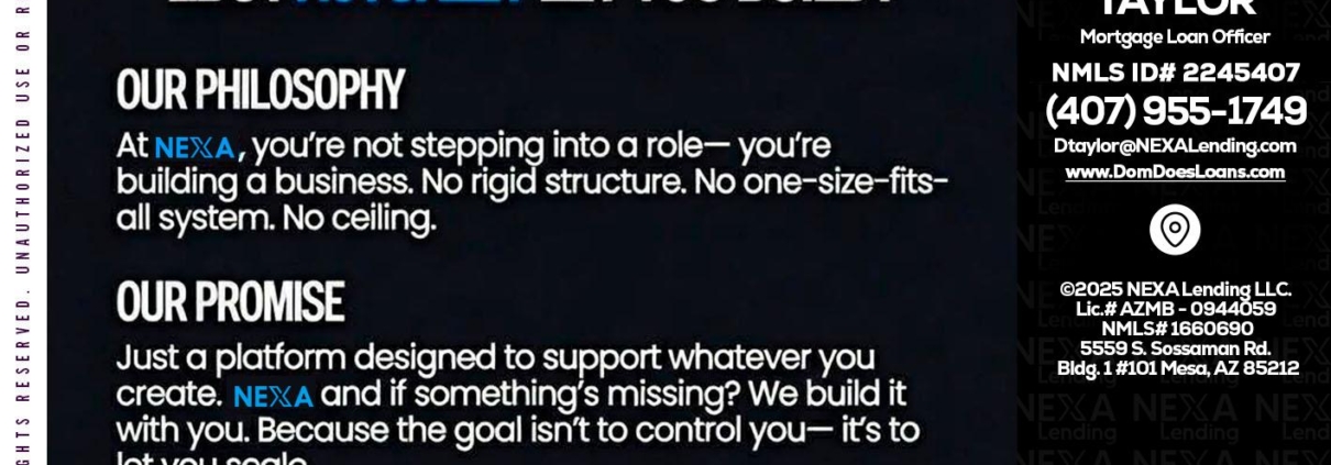 Hi, my name is Dom Taylor. I’m a Loan Officer with NEXA Lending LLC., offering personalized mortgage solutions, fast customized quotes, great rates and service with integrity.