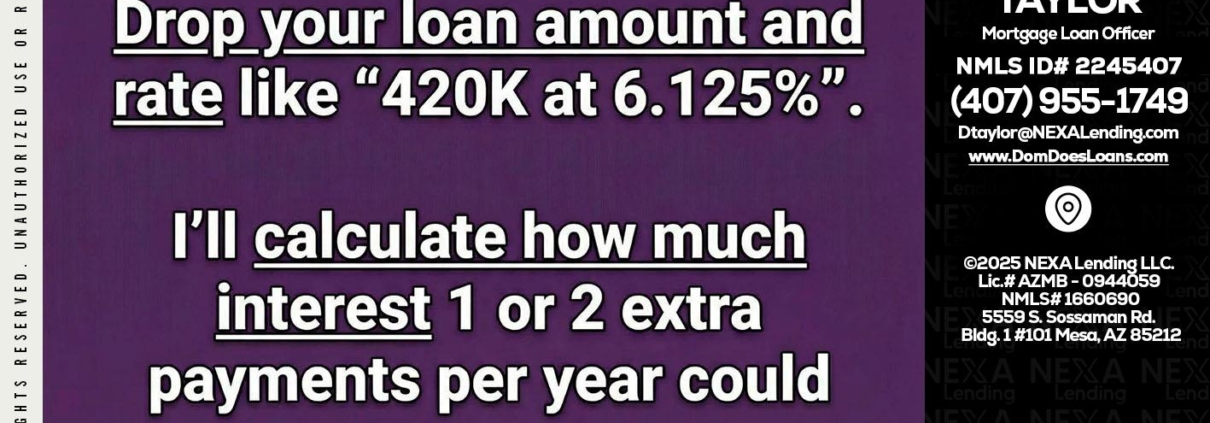 Hi, my name is Dom Taylor. I’m a Loan Officer with NEXA Lending LLC., offering personalized mortgage solutions, fast customized quotes, great rates and service with integrity.