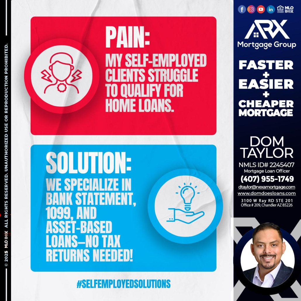 Hi, my name is Dom Taylor. I’m a Loan Officer with NEXA Mortgage LLC., offering personalized mortgage solutions, fast customized quotes, great rates and service with integrity.