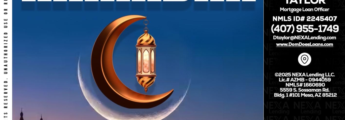 RAMADAN - Dom Taylor -Mortgage Loan OfficerHi, my name is Dom Taylor. I’m a Loan Officer with NEXA Lending LLC., offering personalized mortgage solutions, fast customized quotes, great rates and service with integrity.