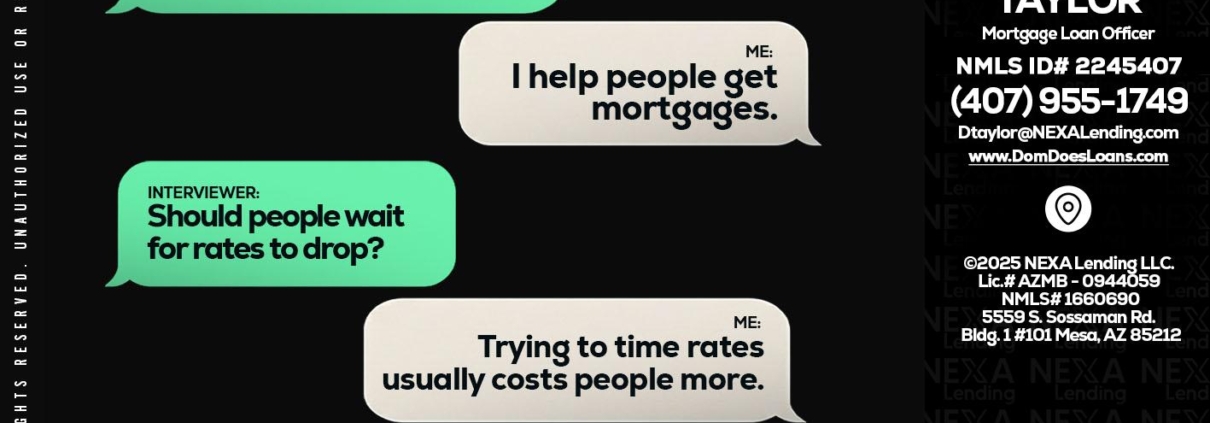 rapid fire - Dom Taylor -Mortgage Loan OfficerHi, my name is Dom Taylor. I’m a Loan Officer with NEXA Lending LLC., offering personalized mortgage solutions, fast customized quotes, great rates and service with integrity.