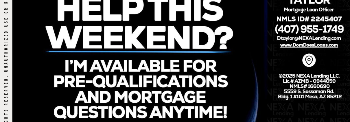Hi, my name is Dom Taylor. I’m a Loan Officer with NEXA Lending LLC., offering personalized mortgage solutions, fast customized quotes, great rates and service with integrity.