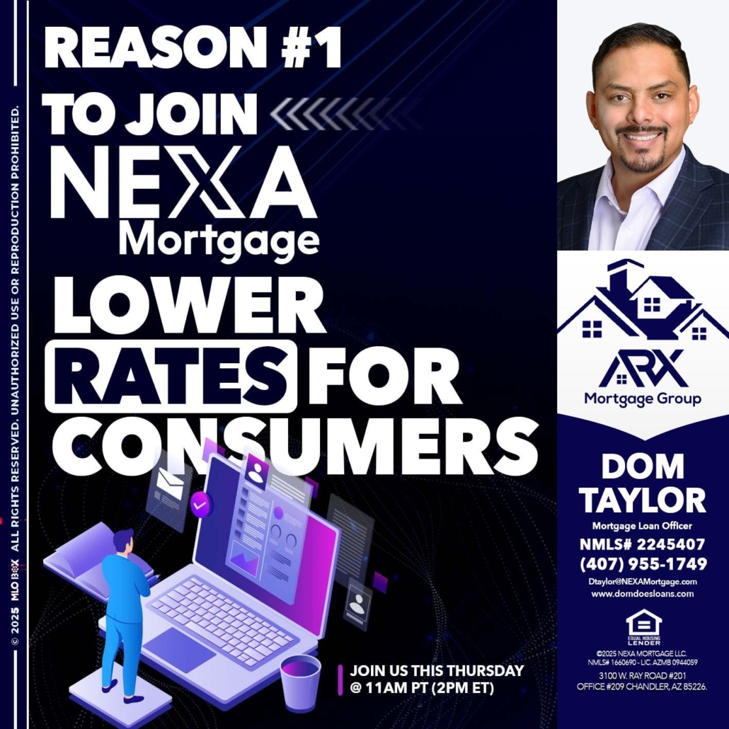 Hi, my name is Dom Taylor. I’m a Loan Officer with NEXA Mortgage LLC., offering personalized mortgage solutions, fast customized quotes, great rates and service with integrity.
