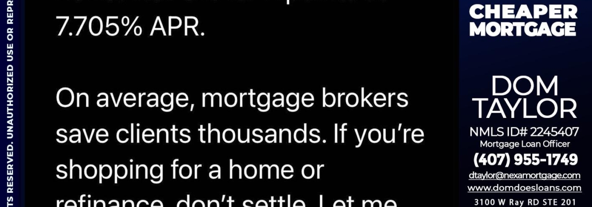 Hi, my name is Dom Taylor. I’m a Loan Officer with NEXA Mortgage LLC., offering personalized mortgage solutions, fast customized quotes, great rates and service with integrity.
