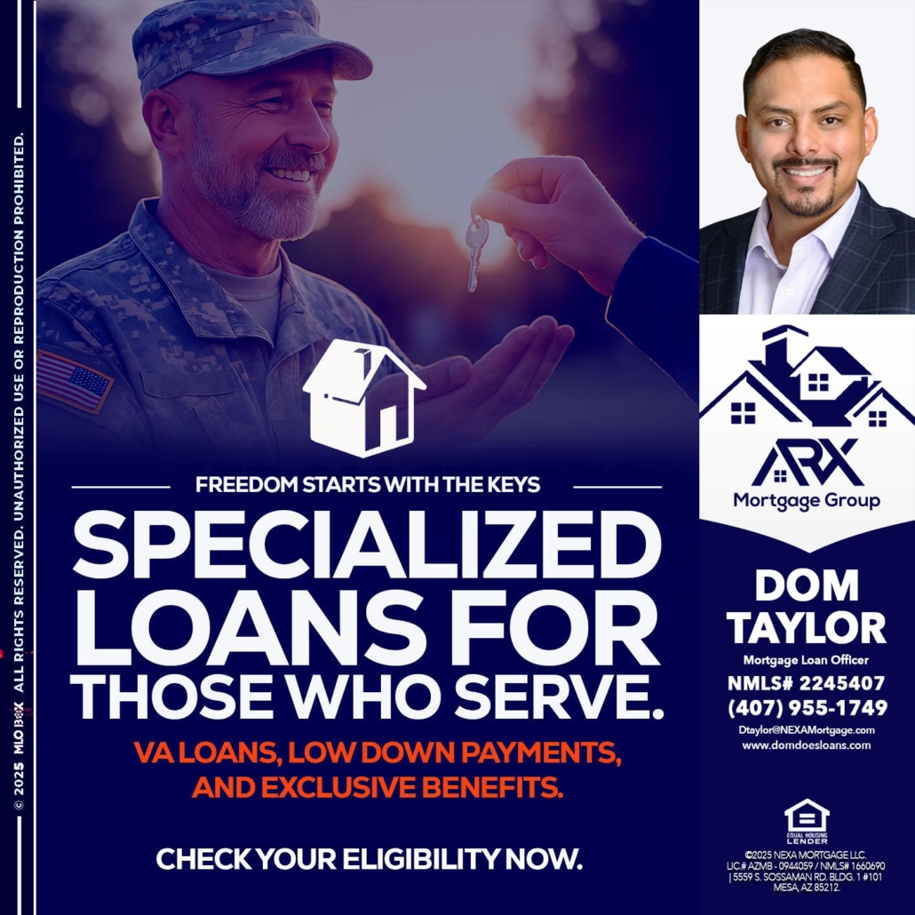 SPECIALIZED LOANS - Dom Taylor -Mortgage Loan OfficerHi, my name is Dom Taylor. I’m a Loan Officer with NEXA Mortgage LLC., offering personalized mortgage solutions, fast customized quotes, great rates and service with integrity.