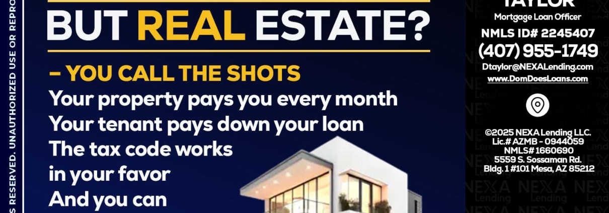 STOCK YOUR - Dom Taylor -Mortgage Loan OfficerHi, my name is Dom Taylor. I’m a Loan Officer with NEXA Mortgage LLC., offering personalized mortgage solutions, fast customized quotes, great rates and service with integrity.