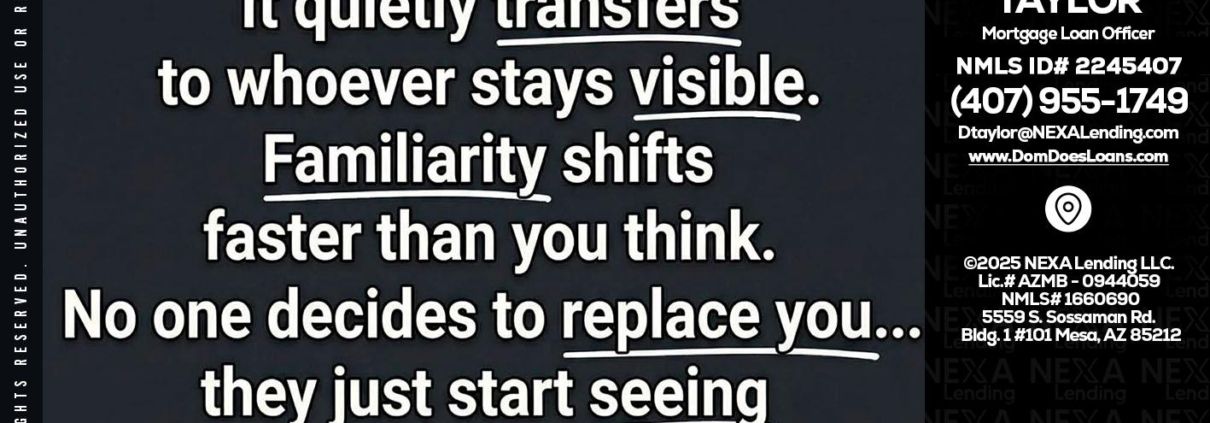 Hi, my name is Dom Taylor. I’m a Loan Officer with NEXA Lending LLC., offering personalized mortgage solutions, fast customized quotes, great rates and service with integrity.