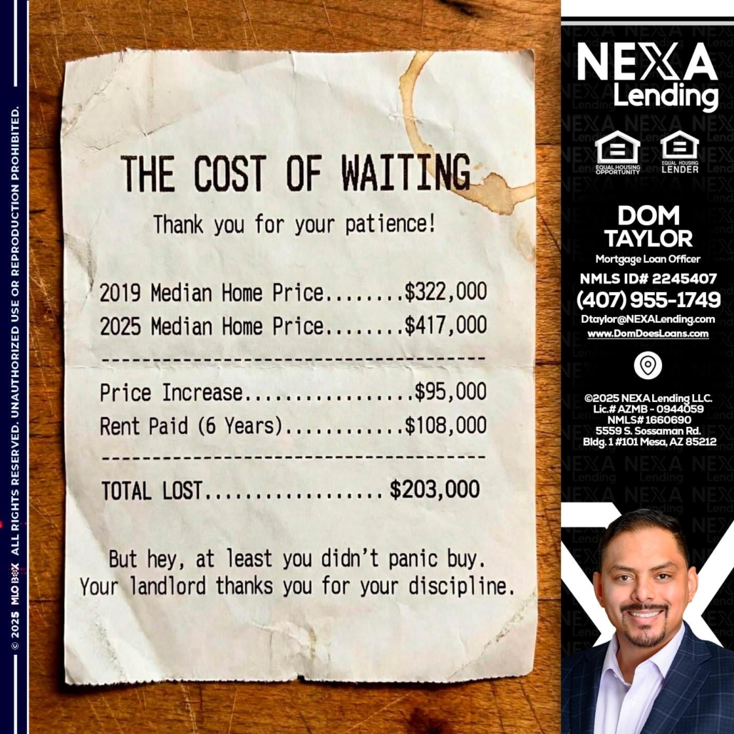 Hi, my name is Dom Taylor. I’m a Loan Officer with NEXA Lending LLC., offering personalized mortgage solutions, fast customized quotes, great rates and service with integrity.