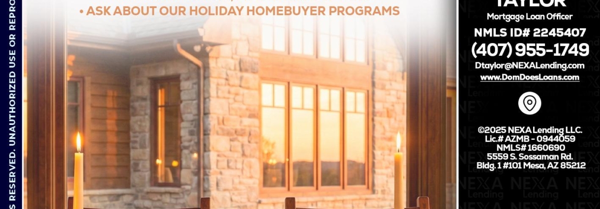 Hi, my name is Dom Taylor. I’m a Loan Officer with NEXA Mortgage LLC., offering personalized mortgage solutions, fast customized quotes, great rates and service with integrity.