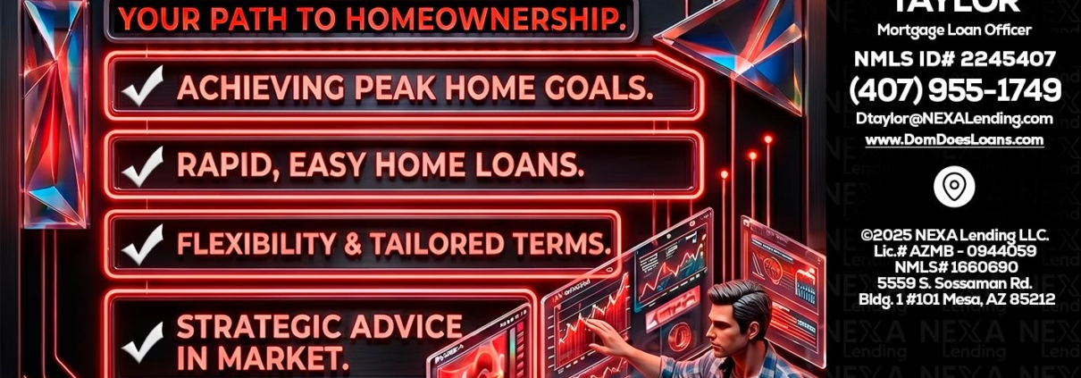 Hi, my name is Dom Taylor. I’m a Loan Officer with NEXA Lending LLC., offering personalized mortgage solutions, fast customized quotes, great rates and service with integrity.