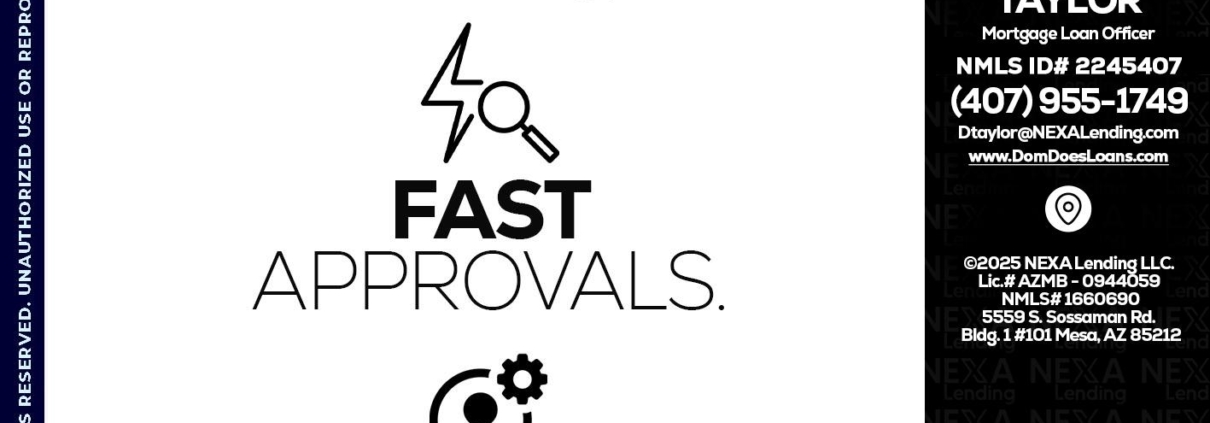 WITH COMPETITIVES RATES - Dom Taylor -Mortgage Loan OfficerHi, my name is Dom Taylor. I’m a Loan Officer with NEXA Mortgage LLC., offering personalized mortgage solutions, fast customized quotes, great rates and service with integrity.