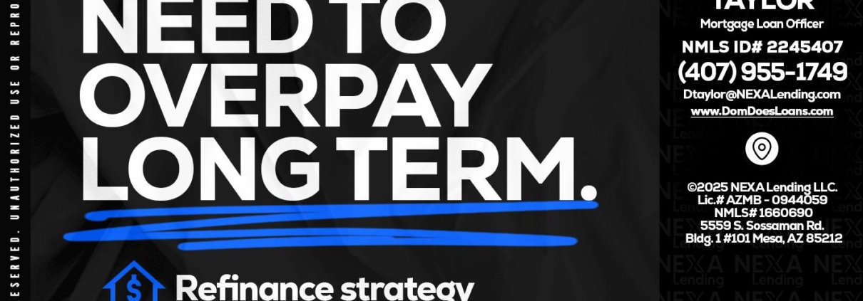 you don't need - Dom Taylor -Mortgage Loan OfficerHi, my name is Dom Taylor. I’m a Loan Officer with NEXA Lending LLC., offering personalized mortgage solutions, fast customized quotes, great rates and service with integrity.